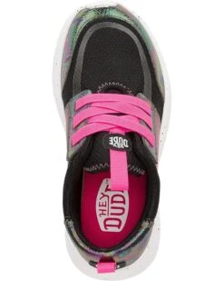 - One of the lightest pairs of shoes around, the Hey Dude™ Kids Lil Dudes Slip-On Prints shoes feature a Flex & Fold design that supports healthy feet with its unique shape. The canvas upper features lightweight elastic laces that allow them to flex with the foot, resulting in a shoe that fits more uniformly. They are made of a cotton lining and removable memory foam cushioned insole that provides maximum comfort and reduces sweating and odors. Machine washable and comfortable, these lace-up sneakers will be an instant favorite in your kid’s shoe collection.