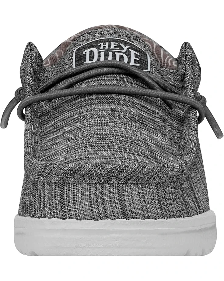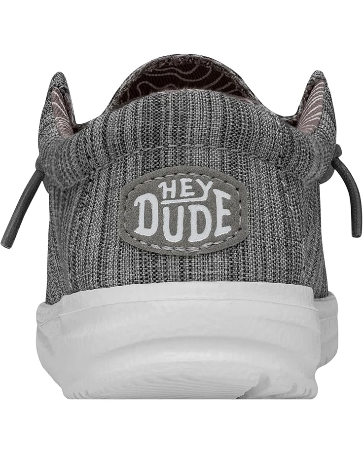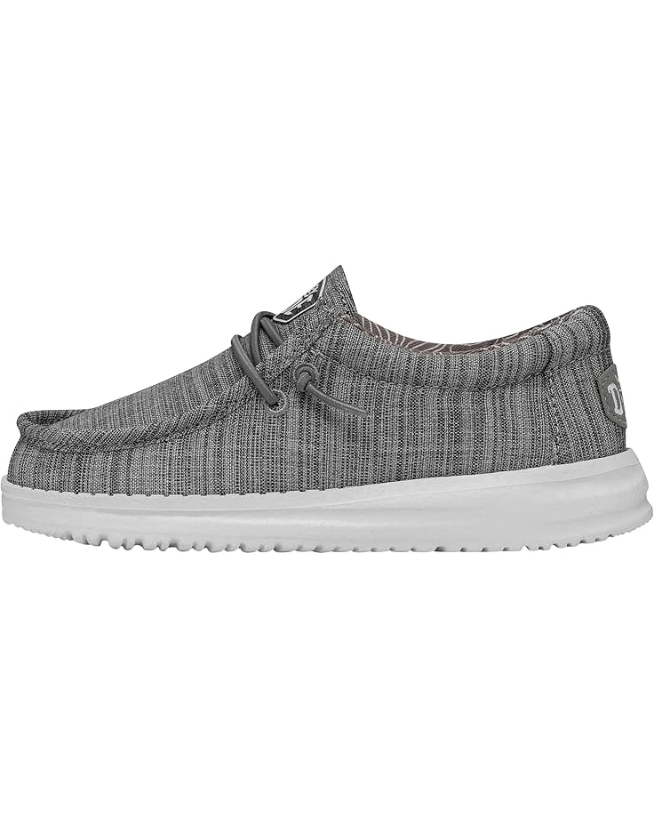 - High in quality and authentic in style, the Hey Dude® Kids Wally Linen Loafers are designed to let your junior take their baby steps with confidence while enjoying that lightweight feel and complete freedom of movement. The shoes feature a textured textile upper, a breathable fabric lining, and a removable foam cushioned insole for underfoot support and come in a slip-on style with an elasticized lace detailing on the upper for a secure and precise fit.