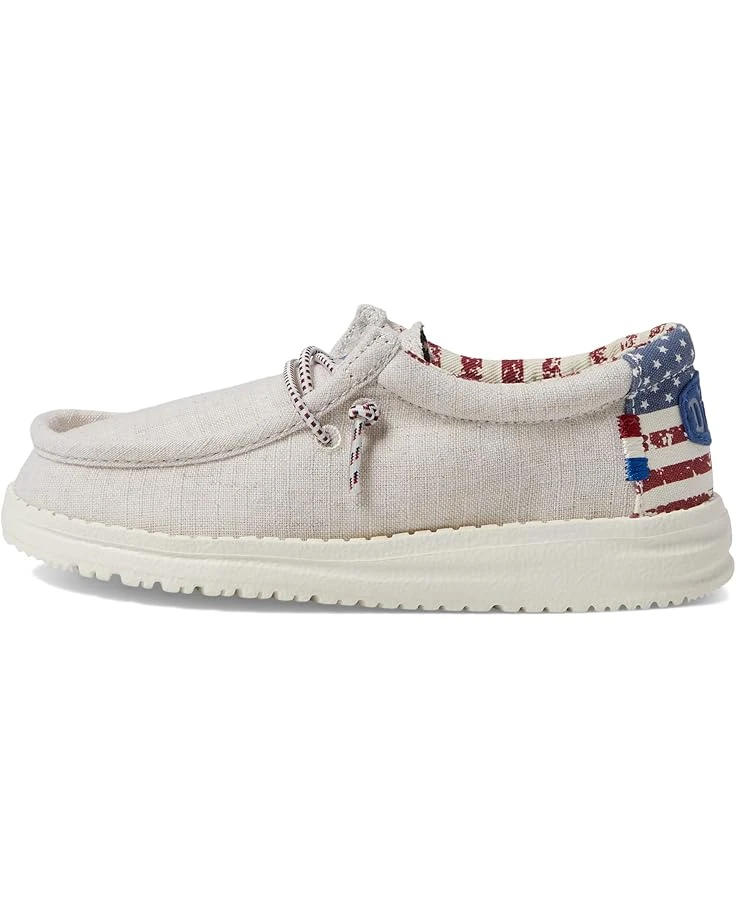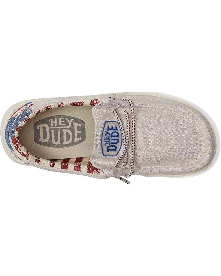 - Give those little steps more time to play without worrying about dust by wearing Hey Dude® Wally Patriotic footwear.