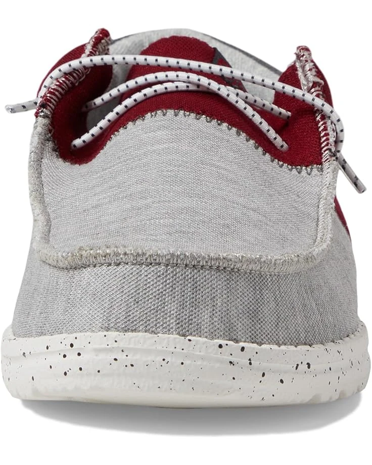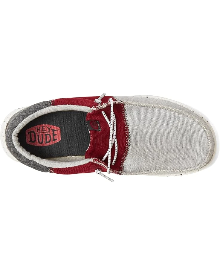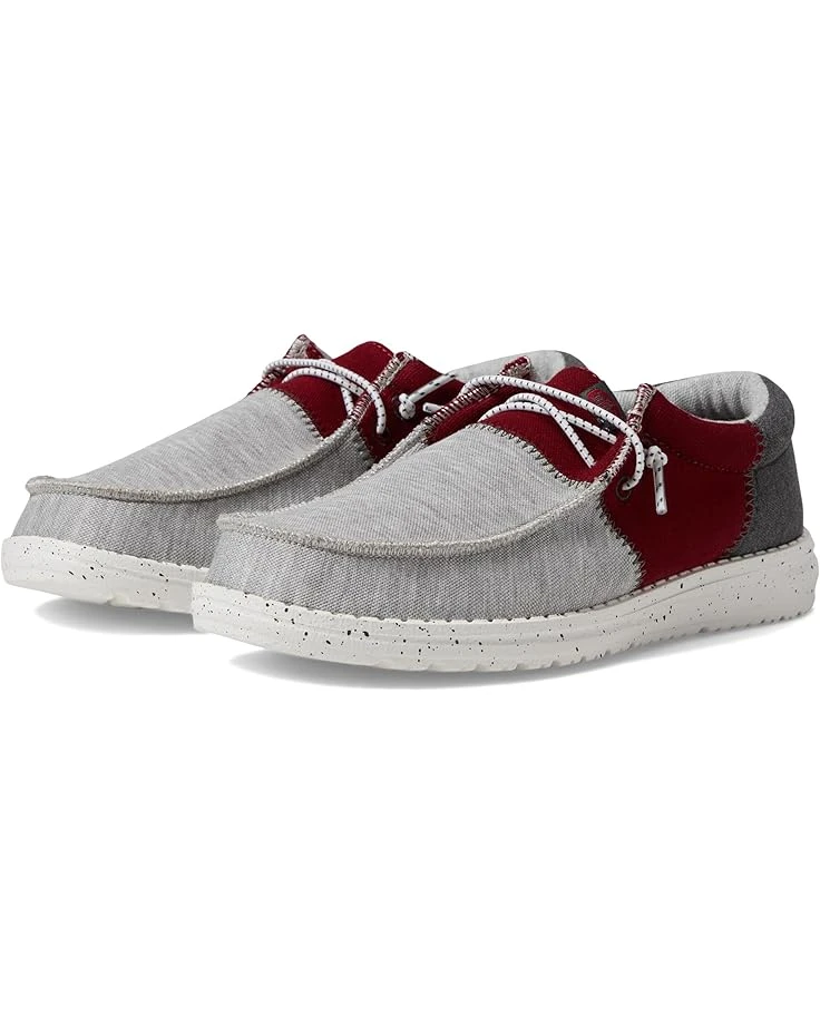 - Travel with confidence and style wearing the Hey Dude® Wally Tri-Varsity loafers. The casual shoes have a lightweight textile upper, breathable textile lining, and a cushioned insole. The loafers have a slip-on style with elasticized laces for comfortable wear.