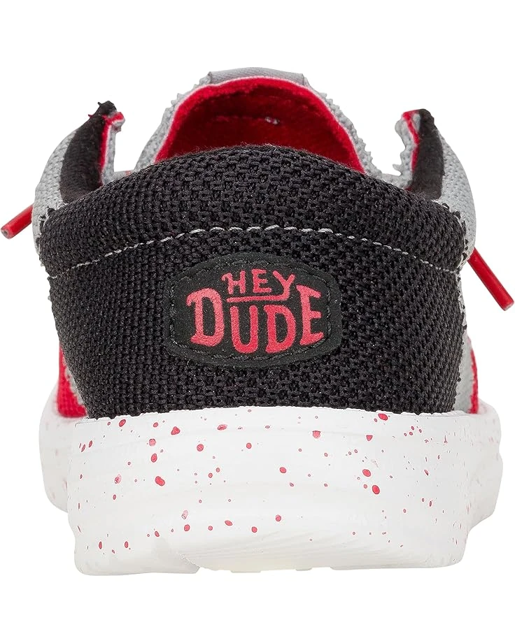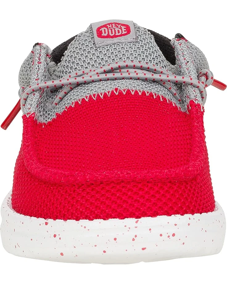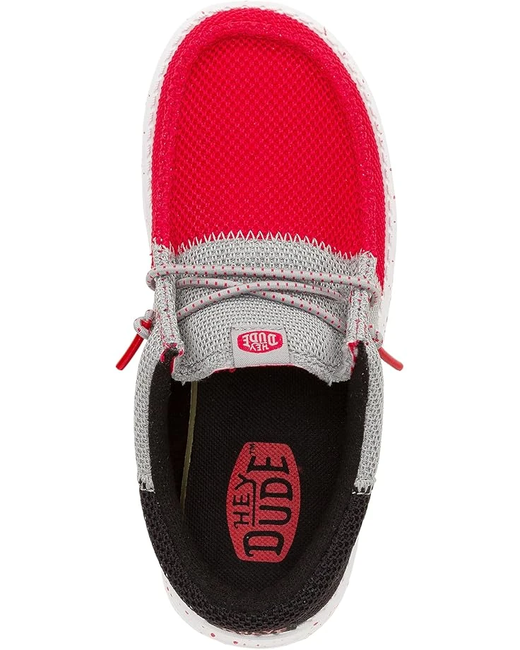 - Level up playtime with ultimate comfort! Hey Dude® Kids Wally Tri Varsity Mesh. These kicks are lighter than a feather, thanks to the ultra-lightweight canvas upper. Effortless on-and-off with the elasticized lace system that conforms to tiny feet for a perfect fit. Breathable comfort meets durable construction, ensuring these shoes can keep up with any adventure, big or small. The removable cushioned leather insole adds all-day comfort, while the grippy rubber outsole provides confident strides.