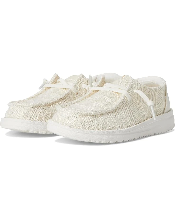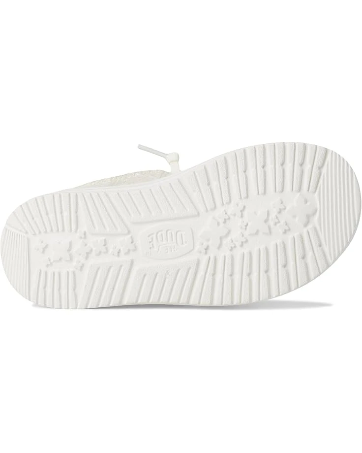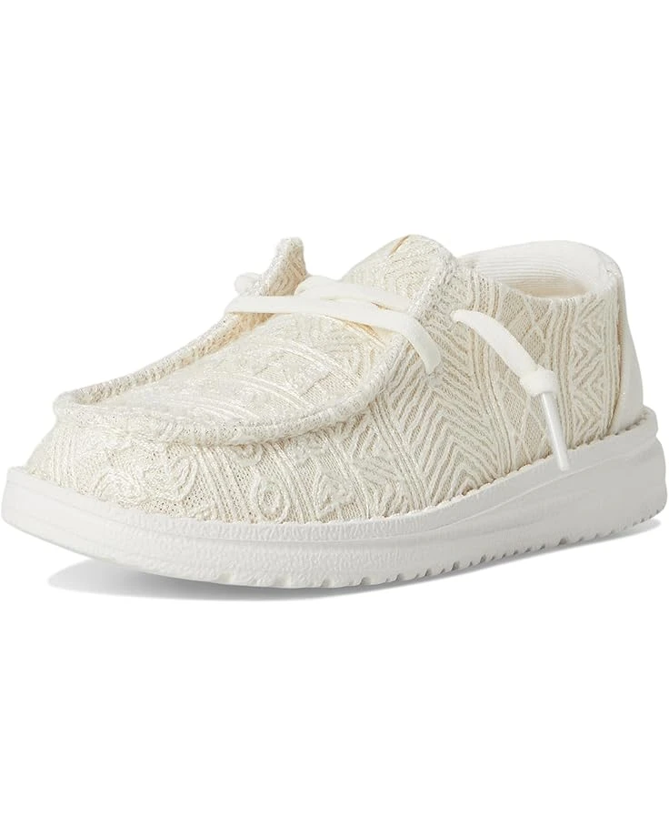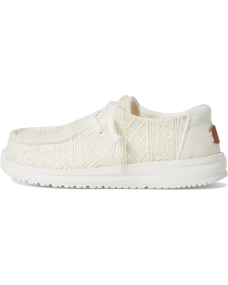 - Easy, breezy, textile makes this Hey Dude® Kids Wendy Crochet Lace slip-on sneaker ready to roam. This low-top footwear is designed with easy-on elastic laces and ethylene vinyl acetate outsole for a lightweight and comfortable feel.