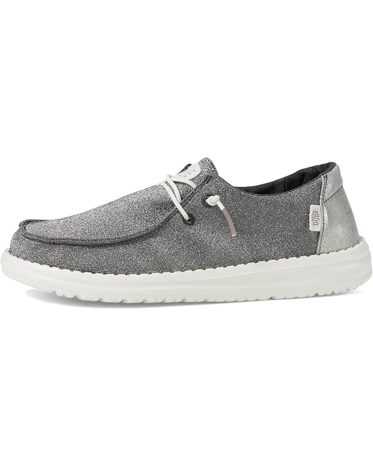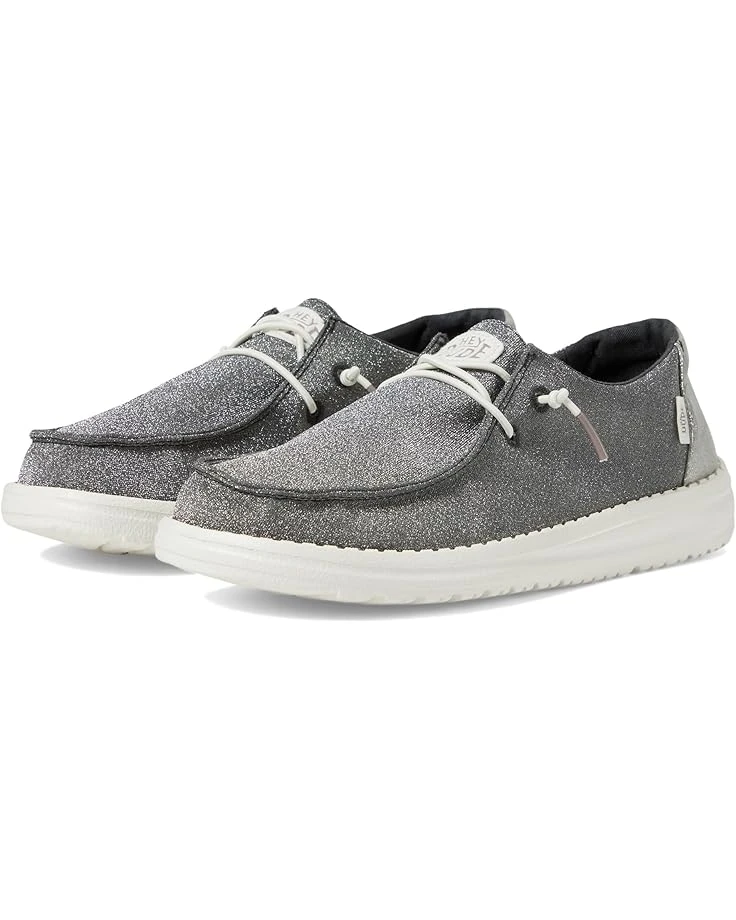 - Perfect for those busy feet, the Hey Dude™ Kids Wendy Metallic Sparkle Loafers are built with a breathable textile upper, lining, and insole and feature an easy-on system with elasticized laces.