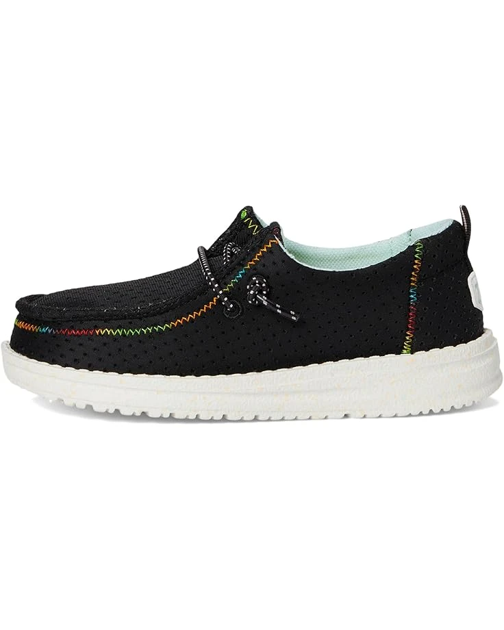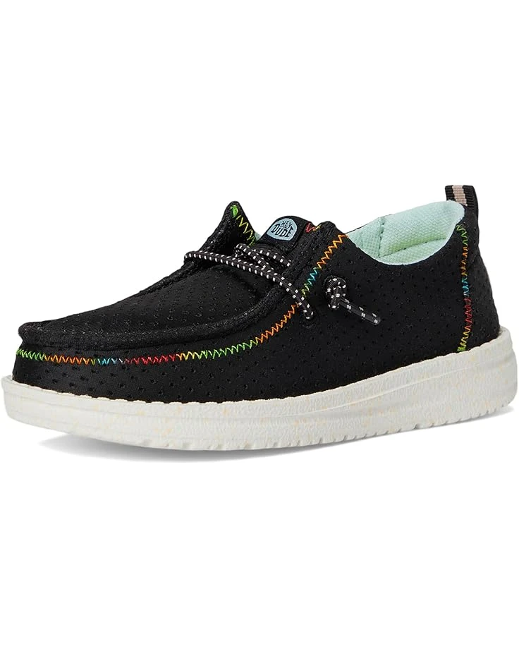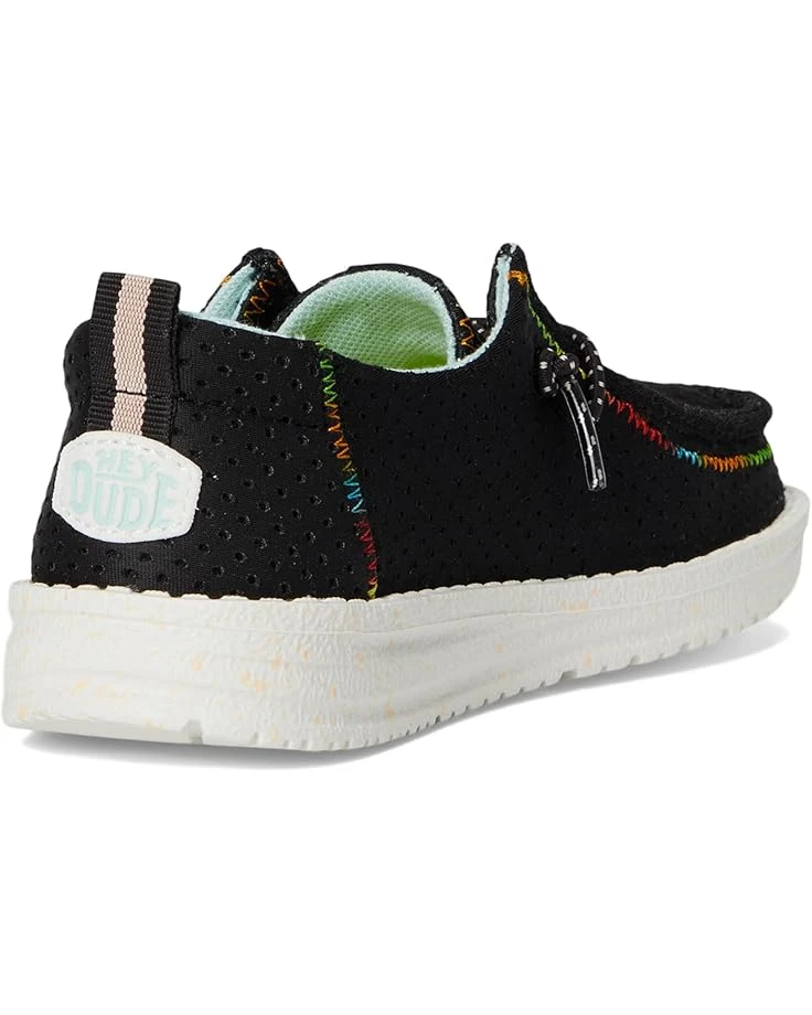 - Get the Hey Dude® Kids Wendy Perf Neoprene sneaker for your casual day out in the city. It features fabric upper, textile lining, and removable memory foam cushioned insole. A round toe, elastic laces, and heel pull-on tabs offer ease of fitting it anatomically on every feet.