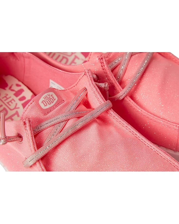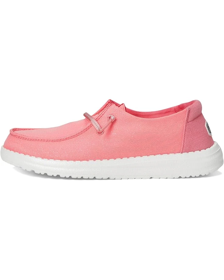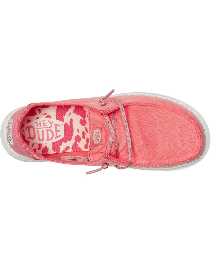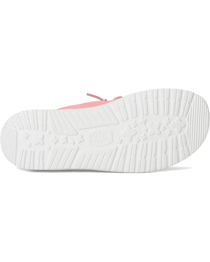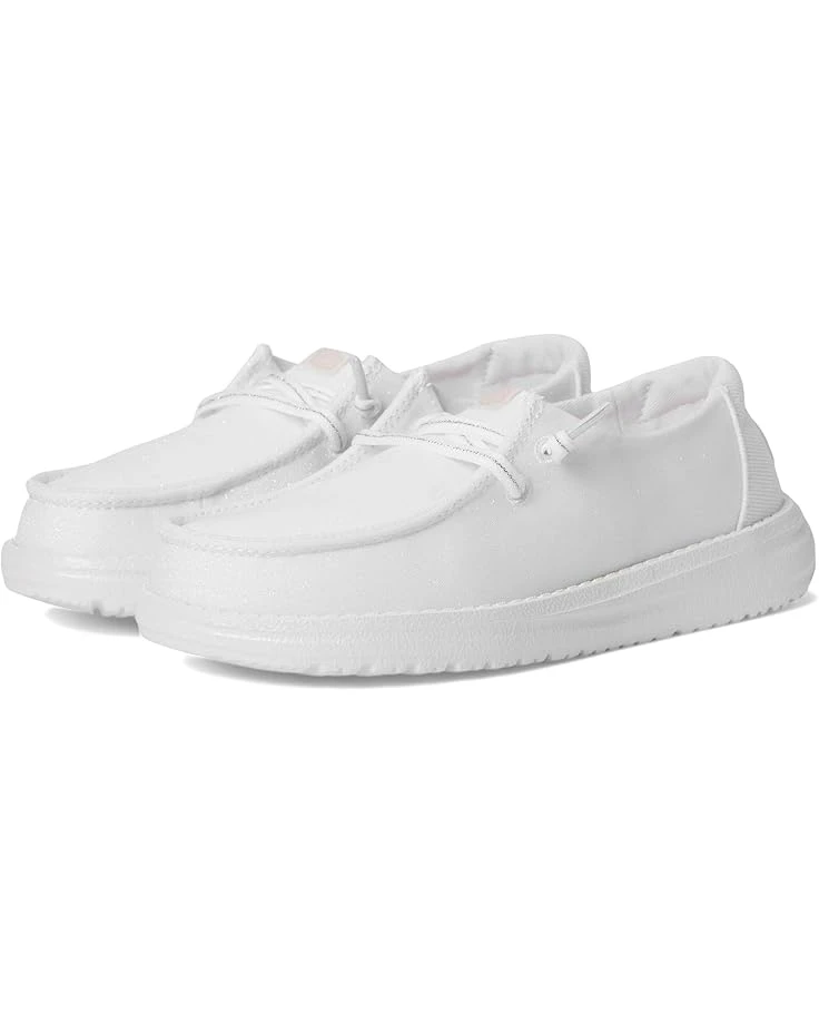 - Easy, breezy, textile makes this Hey Dude™ Kids Wendy Stardust sneaker ready to roam. Easy-on elasticized laces, EVA outsole, and removable insole provide go-to comfort. Wendy provides everywhere comfort, but with a style ideal for women who enjoy life’s ever-changing journey. The relaxed look and feel allow you to explore your passions and experience new places with the confidence your feet will fit into any occasion. The removable memory foam cushioned insole provides maximum comfort and reduces sweating and odors.