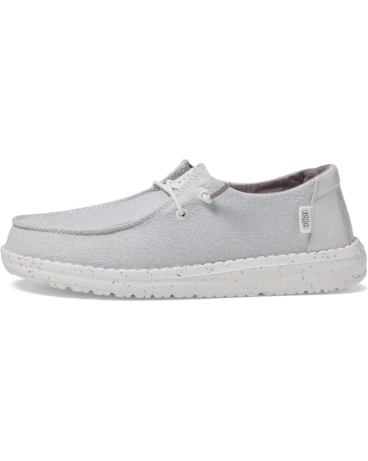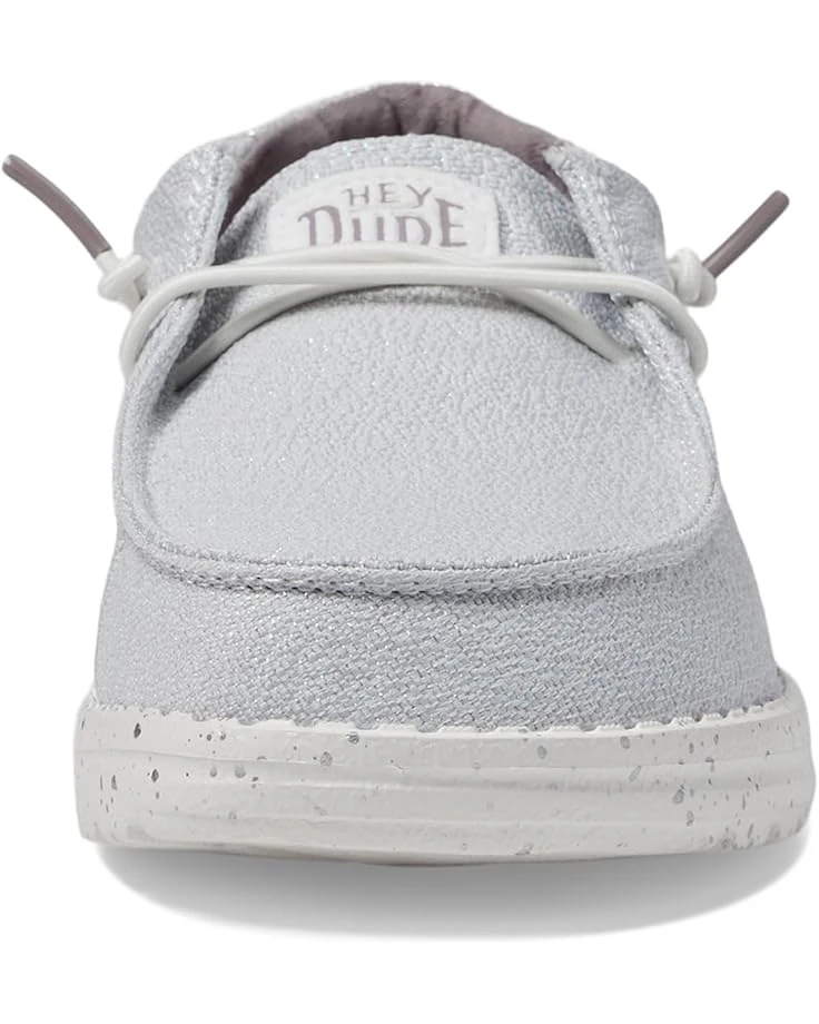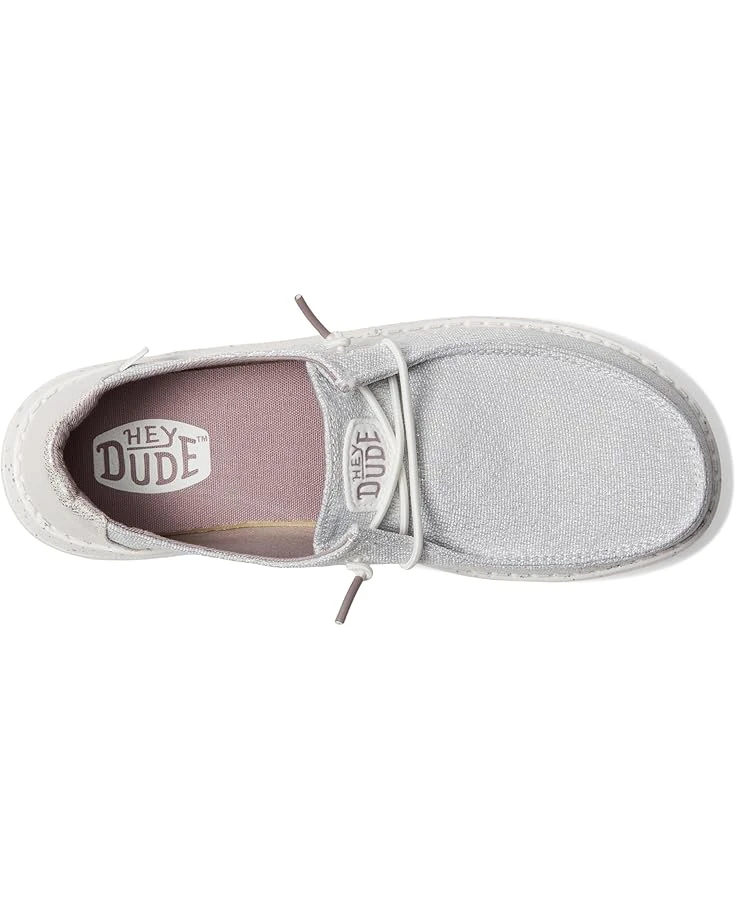 - Keep your little one ready for all adventures with the Hey Dude Kids Wendy Sugar Shine shoes. The slide-on styles feature elastic faux-elastic laces with branded designs on the tongues and heels. The textile uppers show off the shiny design all over the round moccasin toes.
