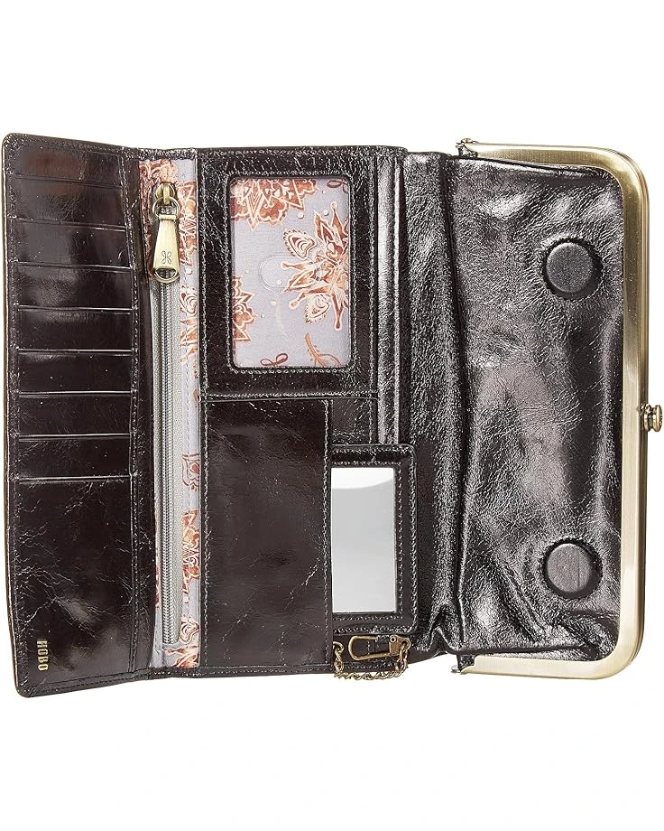 I’m a purse fanatic, and I LOVE Hobo Intern’l purses. I purchased the “Lauren” in black a while back as as something small that I could use on evenings out, but it was just too big to be used exclusively as a wallet, in my opinion. So I went back to Zappos to see what I could find for a wallet. I read some of the reviews on the “Rachel” and decided to take a chance–after all, if it wasn’t what I was looking for, free shipping back, right?? Well the “Rachel” arrived the next day, and I wasn’t disappointed. The wallet I had been using was a men’s checkbook wallet, because I hate how bulky typical women’s wallets get. Not cute. The “Rachel” was a perfect solution. It’s cute, it’s slim, and it’s CLASSY looking. I can fit my checkbook and register into one of the inside flaps. The magnet isn’t flimsy at ALL, and I love the attached coin purse. The best part is, it’s small enough to actually be considered a “wallet,” fitting easily into all of my regular purses, but if I don’t feel like lugging a purse around, it looks like a cute tiny clutch. LOVE it. WELL worth the cost.